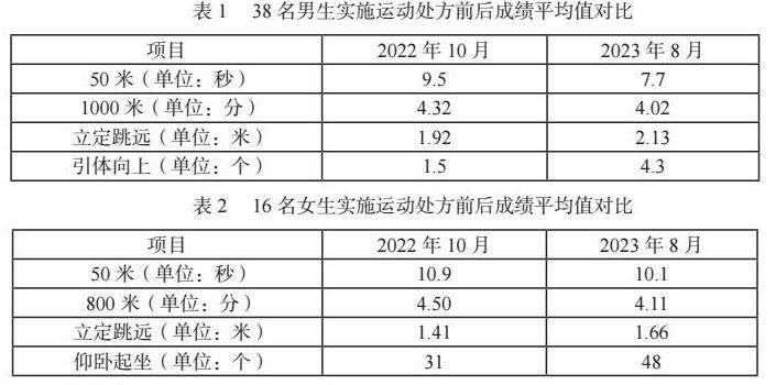 学生返校后,学校根据当下情况,调整上课方式,体育课由线上转为线下。课程组从2022级新生中随机抽取了六个班级共计246人,筛选出BMI指数≤18.5和≥23.9的学生54人。其中男生38人,女生16人进行一学年(2022年10月—2023年8月,包括寒暑假)的体医融合实验教学,通过开设运动处方,学生按照运动处方要求进行锻炼,教师负责跟踪监督和统计数据。