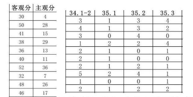 通过对抽样表数据的统计、整理、分析,可以看出,学生们的主观题得分低,总分就低。尤其是主观题34、35两题(道德与法治题)总分20分,几乎大部分学生得分都在10分以下。所以,提高主观题的得分尤为重要。