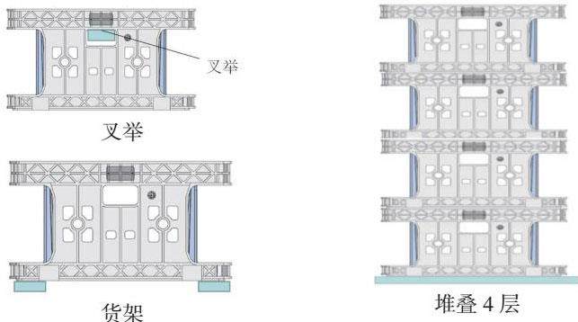 (1)满载叉举和货架运输时,局部位移小于5mm,应力不得超过材料的抗弯强度,不得出现永久变形;