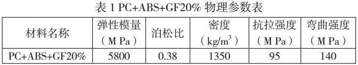 塑料托盘的材料为PC+ABS+GF20%,材料的具体物理参数见表1。