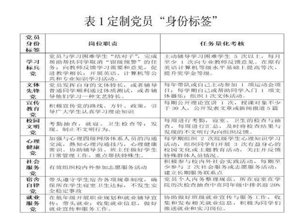 学生党员之所以非权力性影响力不强,还有很大一部分原因在于对自我党员身份角色认同的迷茫性。所以,我们要充分挖掘好不同专业学生党员的特长与优势,在设立学生党员“身份标签”之初,便要注重对不同类型岗位的党员进行分类指导,提出了具体化的任务要求,保证党员可以有的放矢地开展工作。