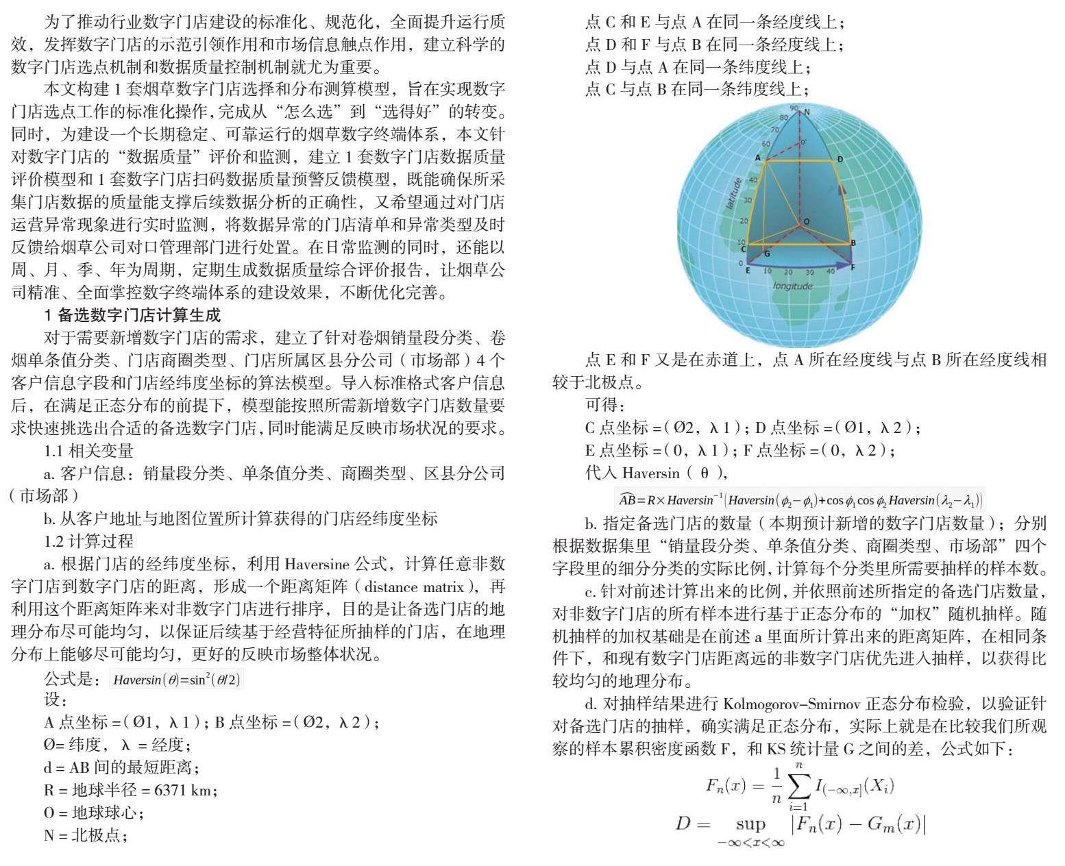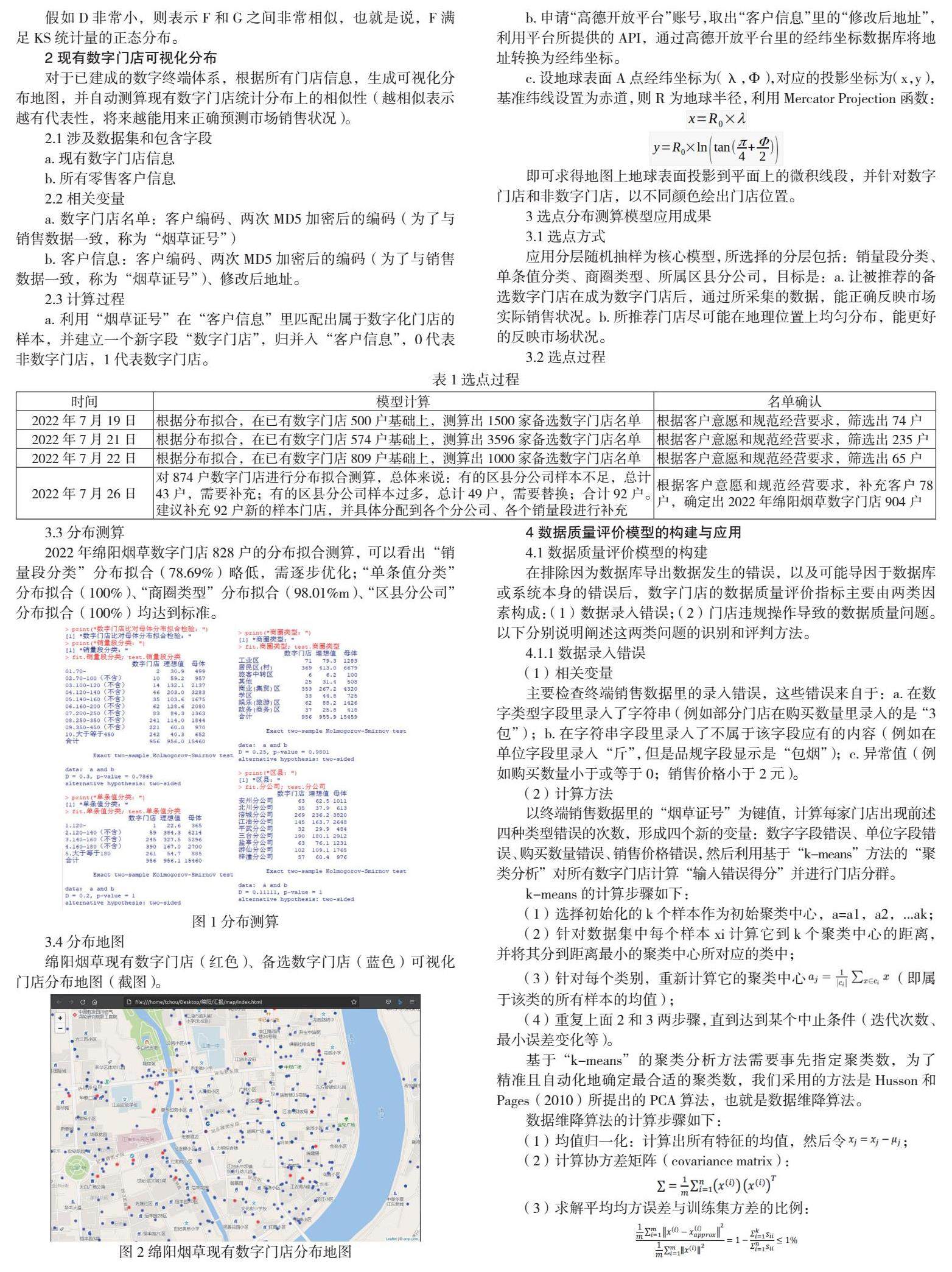 绵阳烟草初期数字门店选点的标准更多立足于客户意愿和规范经营等基础条件,易于操作、扩点较快,但不利于数字门店的长期发展与管理,也为后期的数据还原应用增添了难度。本文通过建立烟草数字门店选择和分布测算模型,解决数字门店数据代表性问题,通过数据质量检测与预警模型,解决数字门店数据准确性的问题。