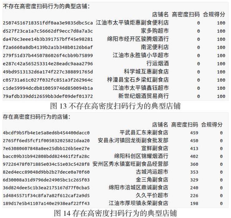 图12中的10家门店因为出现了“高密度扫码”现象(20秒内成交5单以上,数字为2021-06-01直到2022-09-30的出现次数),所以可能存在“违规扫码”行为。