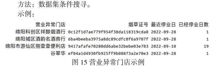 (3)对烟草数字门店进行合理选择后,采集最近一个月、一季的数据进行同类分析,并进行预警。