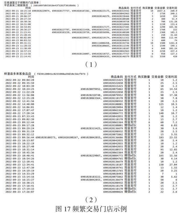 示例:最近一周的频繁交易检验,自动检测出2家需要进一步观察了解的门店。