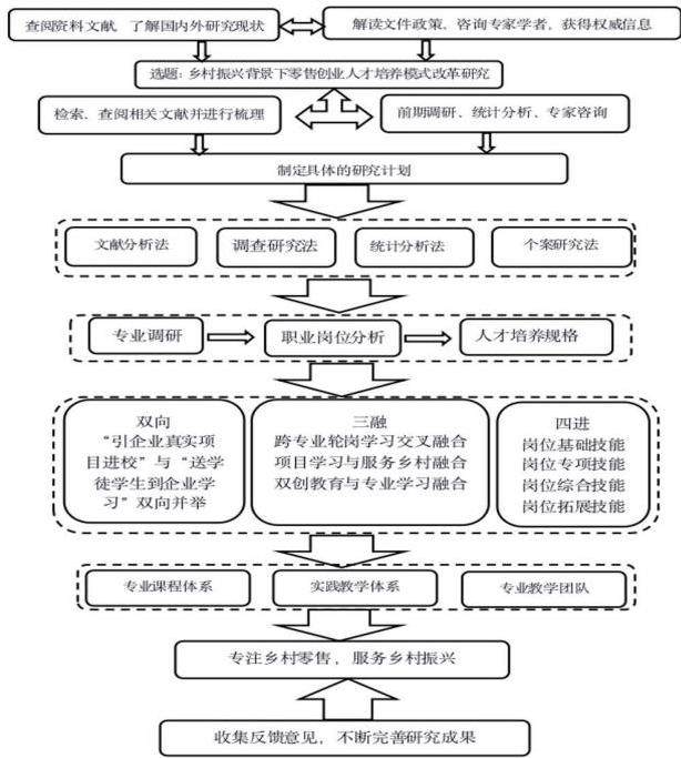 服务乡村振兴的零售创业人才培养模式改革实施技术路线如下图所示。