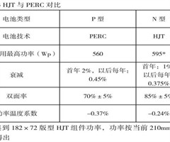 已量产的HJT电池与PERC电池的性能对比如下表。
