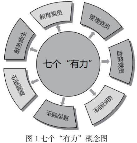 党的十八大以来,根据党中央的部署,中央组织部及教育部十分注重加强高校基层党组织的政治建设、思想建设、组织建设、作风建设、纪律建设,认真落实高校党组织“对标争先”建设计划,提出高校党支部“对标争先”建设的主要途径,根本目标就是要实现“七个有力”[3]。其主要内涵由教育党员、管理党员、监督党员、组织师生、宣传师生、凝聚师生、服务师生共同组成,如图1所示。