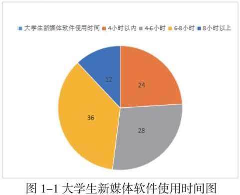 在电子设备普及的社会形式下,大学生新媒体的媒介工具主要以手机和电脑为主。本次研究通过对湖州学院在校大学生进行问卷调查的方式进行数据采集,随机抽查100名在校大学生作为问卷调查对象。如图1-1所示,学生每天使用新媒体软件时间超过4小时的,占比76%,有12%的人每天使用新媒体软件的时间甚至超过8小时。这些大学生网上冲浪工具主要是以微信、微博、QQ、小红书、抖音等软件,社交软件由于其独特的即时性和隐蔽性,在某种程度上已经取代了面对面社交。