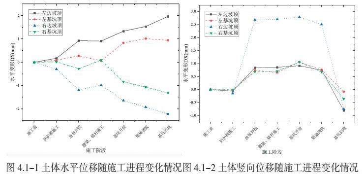 图4.1-1~图4.1-2展示了土体变形随施工进程变化情况。