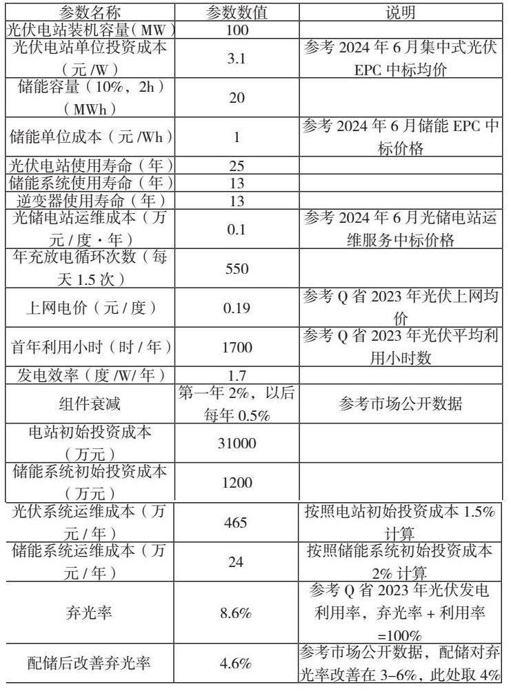 根据全国新能源消纳监测预警中心数据,截至2023年12月末,全国平均光伏发电利用率为98%,其中我国东部区域省份的光伏发电利用率普遍在98%-100%区间,西部地区光伏发电利用率普遍低于95%。考虑到各区域光伏利用率实际情况,我们选取西部Q省作为研究对象进行经济性测算。测算假设如下: