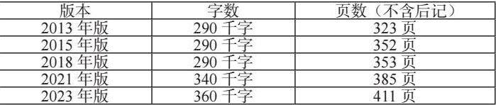 在全书字数变化上,新时代以来5版《纲要》教材的总字数实现了从总体平稳到快速增长的转变。2013年版、2015年版、2018年版三版教材全书的字数稳定在290千字左右。从2021年版开始,教材的总字数不断增加,2021版教材增加到340千字,2023年版教材增加到360千字。全书页数也从2013年版的323页增加到2023年版的411页。