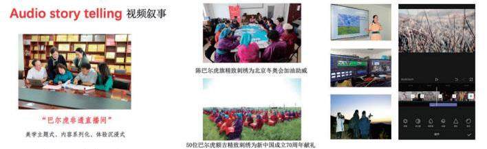 “巴尔虎非遗直播间”由陈巴尔虎旗非物质文化遗产保护中心与我校翻译教研室共同打造,是以美学主题式、内容系列化、体验沉浸式为特点的空间。目前是真人录播+直播为主,未来的打算是往数字人直播的方向发展。通过tiktok平台开展过的直播题目包括“陈巴尔虎旗精致刺绣为北京冬奥运会加油助威”、“50位巴尔虎恶疾精致刺绣为新中国成立70周年献礼”、“部落敖包祭祀”等三次直播活动。目前直播间已经拍摄推出11 期短视频,目标是打造成融通线上线下的巴尔虎非遗美学空间,去持续放大传播的效应,让它成为一键可查的共享资源。