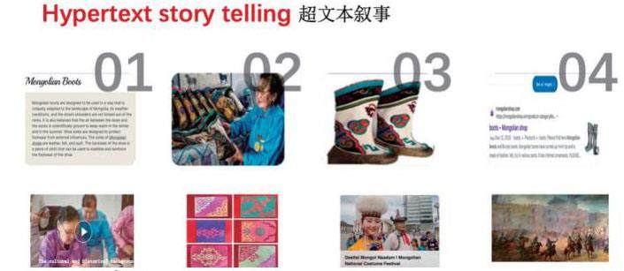首先,收集巴尔虎非遗文化相关的图像素材,其中包括索海靴、巴尔虎苇莲蒙古包、巴尔虎刺绣、巴尔虎传统制毡技艺、还有巴尔虎民间故事和歌曲等等。课题组通过阅读文献、参观博物馆、与非遗传承人合作,专家咨询等方式获取第一手素材。第二步是,我们使用Adobe Photoshop、GIMP、Corel PaintShop Pro、等图像编辑软件对素材进行了处理,从而可以增强表现力和艺术感。第三步是根据巴尔虎非遗故事的情节和要点,设计图像叙事中的线索和结构。最后用图像叙事工具,进行了展示和传播。读者可以通过视觉感受到非遗文化的魅力。激发他们的兴趣,进一步推动传承和发展。