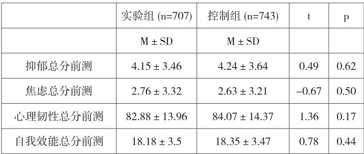 通过对实验组与控制组进行独立样本 t 检验,由表 1 可知,大学生在开始教学前,控制组与实验组在心理健康和心理素质上均不存在显著性差异( Δp>0.05 ),这保证了两组被试处于同一个基线水平。