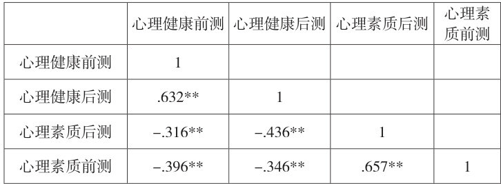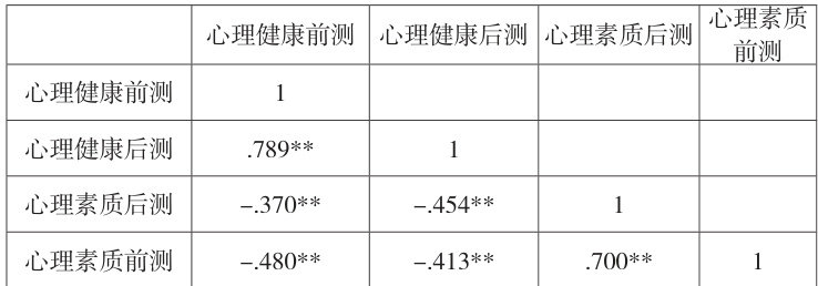 4.2 心理健康与心理素质之间的相关分析