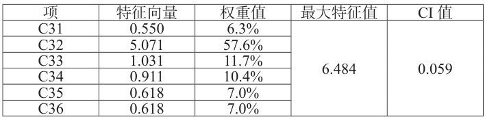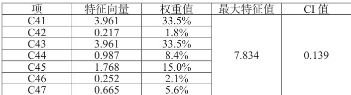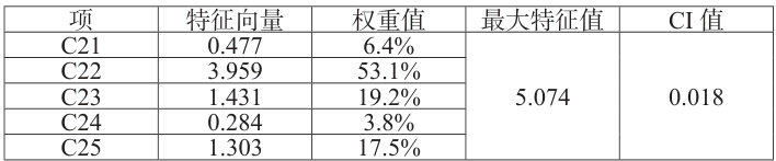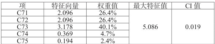 项 特征向量 权重值 最大特征值 CI 值