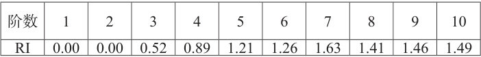平均随机一致性指标对照表(表3)