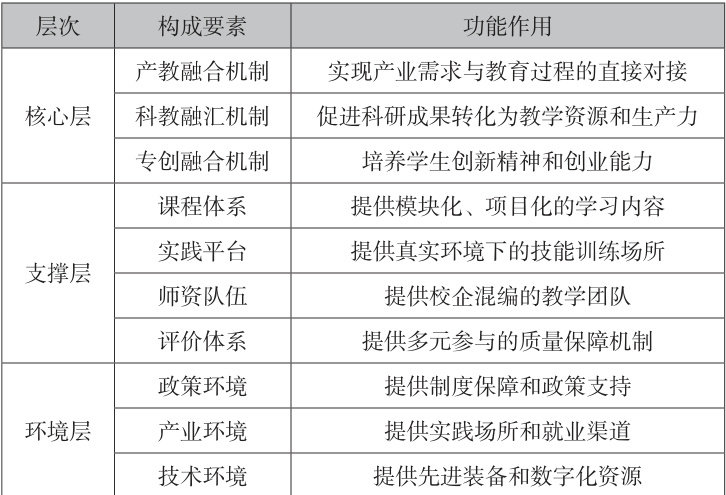 “产教研”动态耦合育人模式是指产业、教育、科研三个子系统通过相互作用、相互制约,形成良性互动的有机整体。其内在机理体现在:需求驱动:智能制造产业升级与技术变革对人才能力提出新要求,直接驱动教育内容和科研方向的调整。教育响应:职业院校通过课程改革、教学创新和资源建设,响应产业需求变化,培养适应新质生产力要求的现场工程师。科研赋能:科研活动通过技术创新和知识创造,为产业和教育提供新方法、新工具、新内容,推动产业升级和教育质量提升。