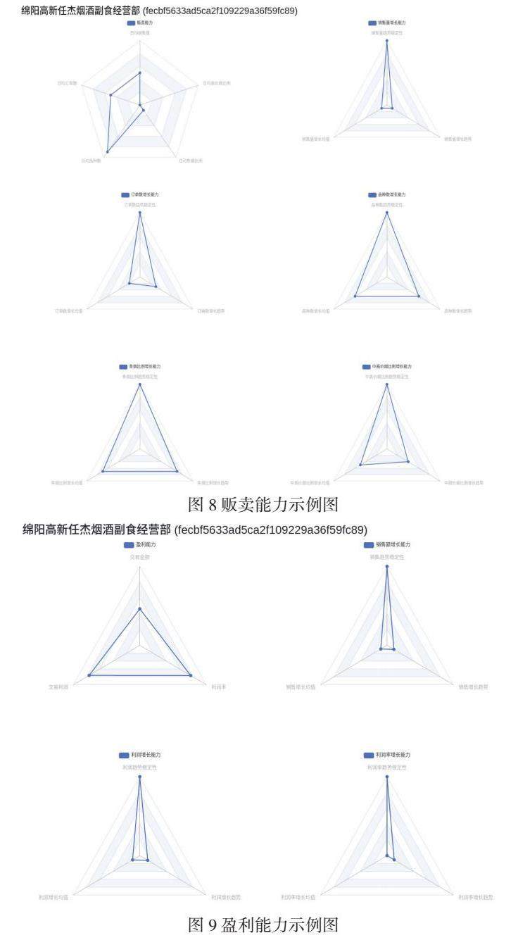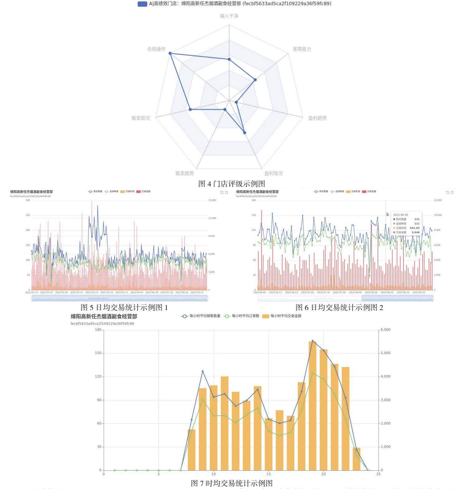 将这些分析账单在每一家个别门店的基础上加以可视化,每一家门店在所有指标上的实际状况(包括目前能力和未来潜力)都能自动化构造出基于html5+css3+javaScript的网页页面,供烟草公司对口管理部门和该门店业主查阅参考。以下举出典型案例加以说明。
