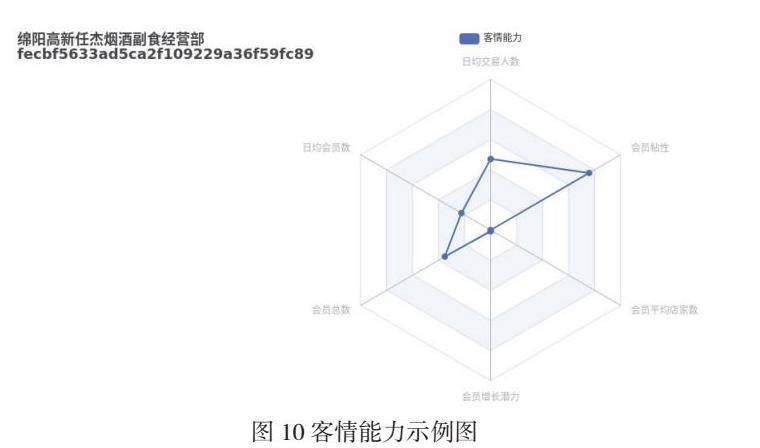 为了既能观察单一门店的经营分析,又体现每个门店与绵阳烟草所有数字门店的状态表现的对比,上述这些能力在雷达图上的得分,是设置为该门店与其他数字门店对比之后的相对得分,分数经过标准化后,都介于1-100分之间。