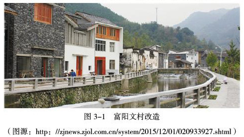 “活”用乡土建筑材料。乡土建筑材料有许多种类,例如竹木、砖瓦、生土等原生材料,在乡村景观设计中使用能用表达出浓厚的自然乡土气息,同时这类材料的可循环利用性也有低碳环保的效果。王澍的文村改造项目(图3-1)中,建筑立面材料选用了当地常用的乡土材料,如夯土、抹泥、杭灰石、斩假石等。让传统文化的痕迹在新农村的环境中获得新生。