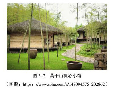 在对乡村景观进行设计的过程中,乡土材料与现代工艺的结合使用,可以在保留乡土性的同时也满足现代生活的需求,提高了村民的生活质量。如在室内建筑的改造中加入玻璃的使用,增加采光。又或者像在莫干山裸心小馆(图3-2)的建造中,将竹子与废弃钢模板结合,是传统材料再生,两种材料进行互补,既有易施工造价低的特点,又保留了竹子本身的轻盈感。
