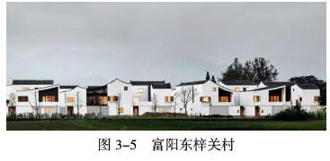 乡村建筑元素中饱含着许多乡土文化符号,如屋顶、墙体、门窗等等。屋顶是乡土建筑中最有特色的元素之一,把屋顶常见的坡面和曲面形态进行抽象提取,并进行重组、变形,就可以作为一种景观元素运用到乡村景观的设计营造当中。如杭州富阳东梓关的回迁农居(图3-5)设计,在继承乡土建筑形式的基础上,提取江南民居中常见的曲线屋顶。