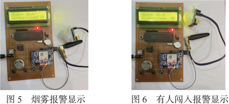系统通过前端烟雾传感器和红外热释电传感器来采集信号,通过A/D转换模块将模拟信号转换为数字信号,送到单片机进行数据的分析与处理,显示模块显示烟雾浓度值及红外检测倒计时时间,当检测到的烟雾浓度超过阈值或有人闯入时,蜂鸣器会进行报警,报警指示灯亮起,同时,通过无线通信模块给用户发送短信,提醒用户家居环境有危险产生,及时进行处理,保护生命和财产安全。