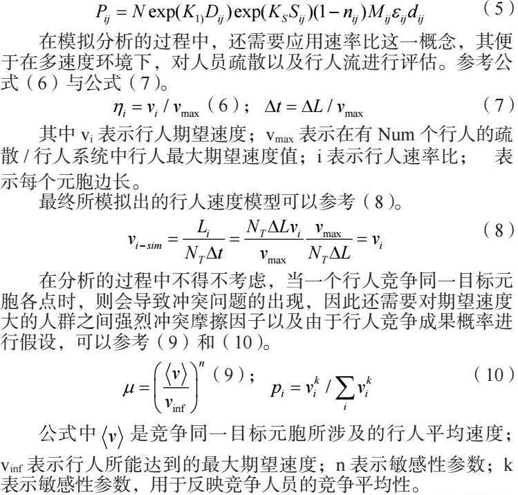 公式中是竞争同一目标元胞所涉及的行人平均速度;vinf表示行人所能达到的最大期望速度;n表示敏感性参数;k表示敏感性参数,用于反映竞争人员的竞争平均性。