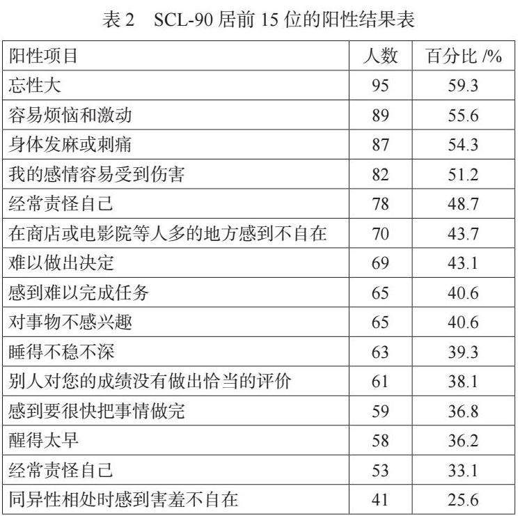 因子分≥2即为阳性项目,SCL-90前15位的阳 性项目如表2所示,这15项很可能就是影响消防员心理健康状况的主要原因。