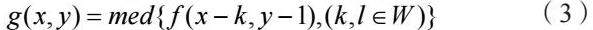 根据对(图2)去噪预处理结果的分析,尽管均值滤波预处理技术具有“去噪”作用,但去噪的同时也会出现造成图像边缘不清晰现象,反而会出现“失真”问题。因此,为消除该技术的应用局限性,还可推广“中值滤波”预处理技术(第二种),该技术是按照灰度值排序思想处理图像,公式如下所示: