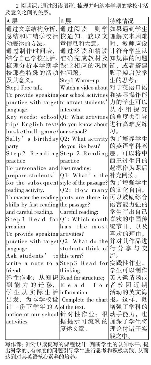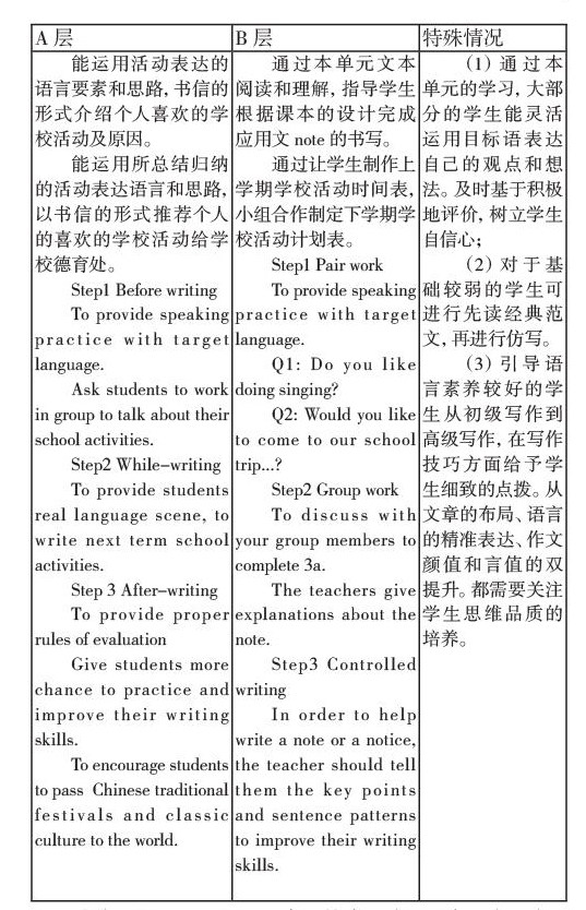 其次,根据教材大单元活动观设计听说课、阅读课和写作课的教学目标和课堂分层作业是十分有必要的。