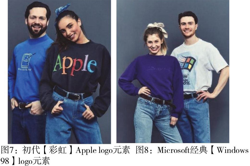 简约型服装在款式方面大多采用最基础的T-Shirt、卫衣、衬衫、夹克等服装样式。基于“技术宅”他们心里并不希望自己在人群中过于亮眼在色彩方面建议使用灰色、深蓝这一类不太亮眼的色彩为主色调。在面料方面选择舒适感强的天然纤维面料。例如一家西雅图初创公司Ya Joe就将市场对象瞄准了“技术宅”人群,Ya Joe是一家专门帮助“技术宅”设计服饰的电商平台,他们的服装主要体现了三个特点:时尚、舒适、实用,结合电商销售模式,深受“技术宅”们的喜爱。伦敦时尚名所Goodhood与店铺Unified Goods合作,独家发售了一系列由Apple、Sony和Nokia等科技公司出品的珍贵Vintage单品,如图7、8,简洁的Logo,搭配80年代复古风格的基础款上衣,可谓是完美诠释了“技术宅”们的简约时尚风格。
