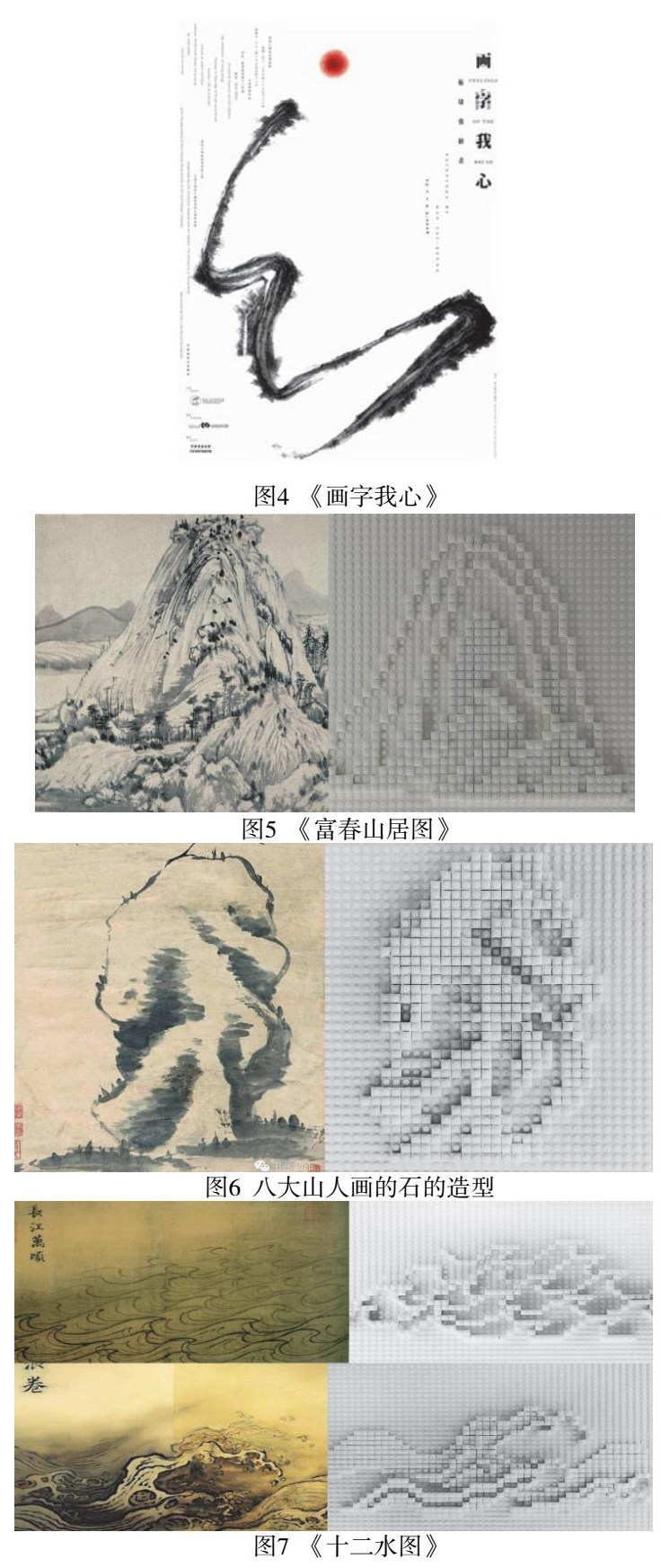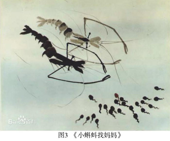 中国画元素作为一种符号形式,它的载体是随着科学的发展和社会的进步而不断地发展变化的。在当今这个科学技术发达的社会,随着多媒体技术的出现和发展,中国画元素的表达载体也有了很大的创新。中国画元素可以表现在多种载体上:一是荧幕上最常见的动画,例如六十年代中国第一部水墨题材的动画片《小蝌蚪找妈妈》(图3),其中小动物的造型就是取自齐白石笔下的鱼、虾等形象;二是媒体广告的设计,例如靳埭强先生的设计作品《画字我心》(图4),将中国画元素应用到海报设计中;除此之外还有一些舞台展示设计等等。在这些作品的创作过程中,综合了大量的中国画元素的审美特征。不同的载体有不同的表达方式。