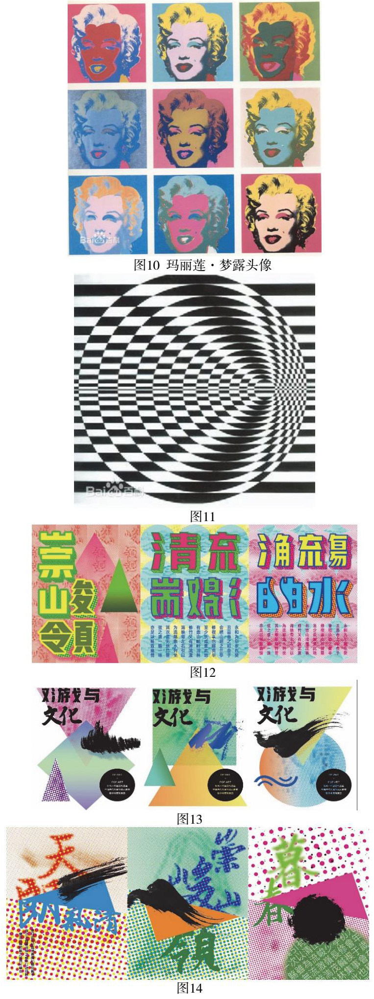 波普艺术是一种思想上的解体和重造文化。它反历史、反精英、反经典,经常以搬运大众社会的图形、复制生活的原貌作为创作的基本元素。安迪·沃霍尔(Andy Warhol)是波普艺术中最具代表性和影响力的画家,是波普艺术运动的发起人和主要倡导者。他的作品都以不断复制的形式呈现,他把可口可乐的瓶子、美元纸钞以及玛丽莲·梦露的头像(图10)等来自于大众传媒的图像作为基本元素在画面上重复排列,用复刻来展现某种意义上的空虚和麻木。