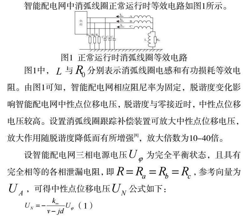 智能配电网中消弧线圈正常运行时等效电路如图1所示。