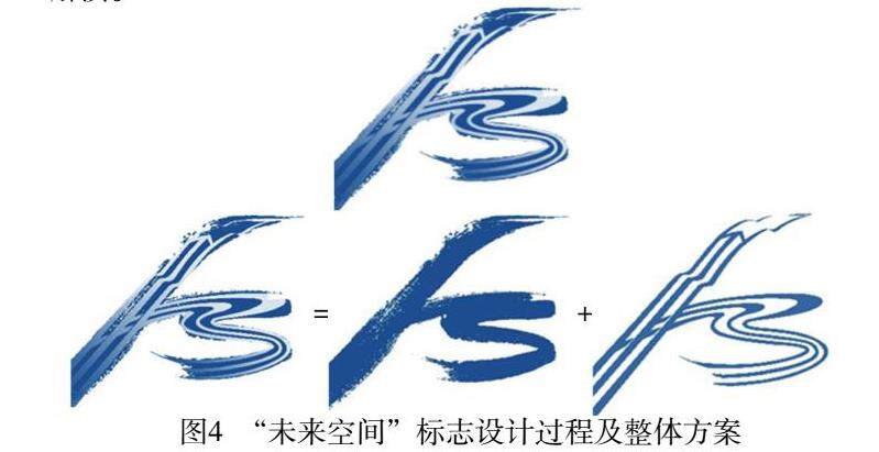 在充分解读道家美学之下“上善若水”文化寓意之后,笔者将其精神理念传达到标志设计的创作中(见图四):“未来空间”Logo由一气呵成、遒劲有力的书法“FS”及其衍生出的6条曲线构成。设计理念囊括了奉贤地理特征(黄浦江、海浪)、道家美学、以及“未来”象征意义(箭头)。