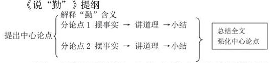 为让同学们理清你的布局谋篇,你特意向同学们推荐一篇文章林家箴的《说“勤”》,仿照此文的结构思路,你列了一份提纲进行展示。