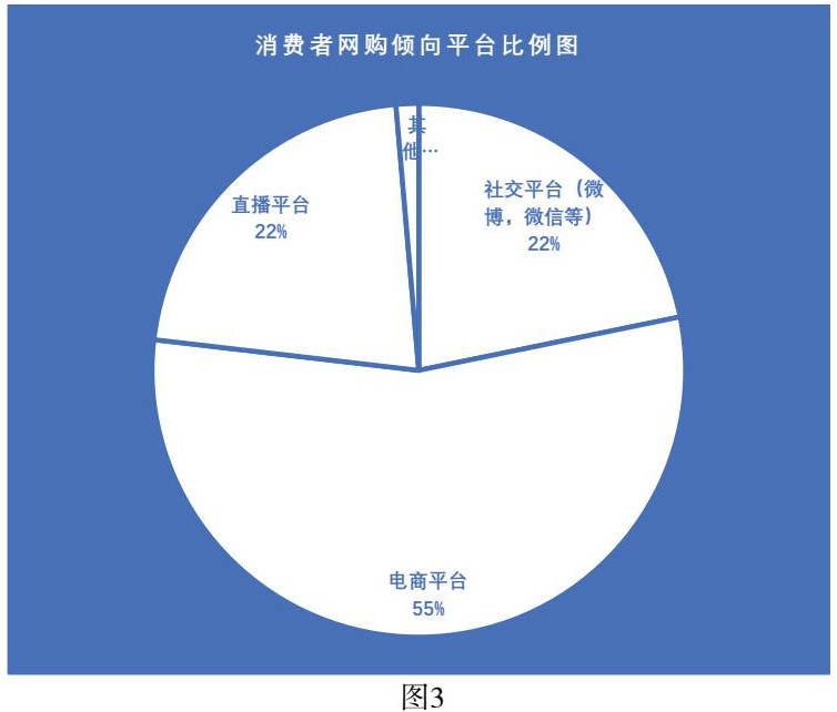由图3可知,在购买倾向方面,有55%的消费者在电商平台(淘宝、京东、拼多多等)购买核桃;直播平台(抖音和快手)以及社交平台(微博微信)各有22%的消费者在上面购买核桃;电商平台购买核桃的有1%的消费者。由此可知,网购是人们的最佳购买意愿方式。