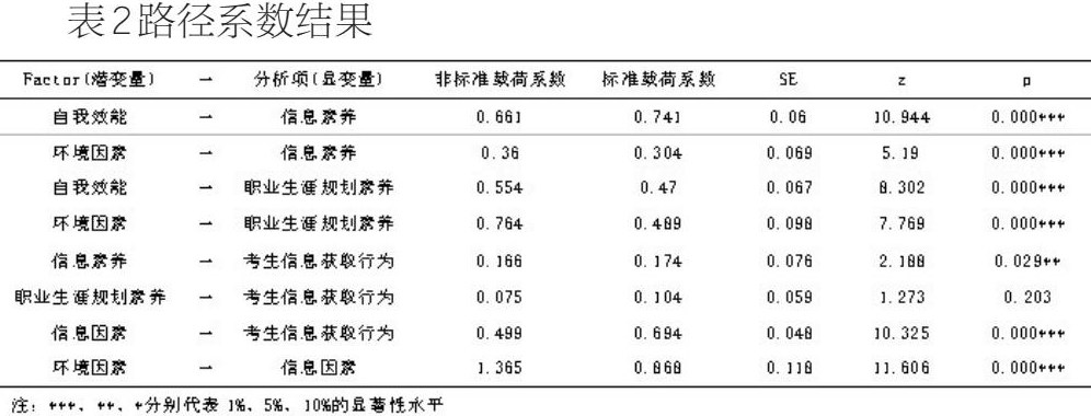 H2:环境因素对考生的信息素养、职业生涯规划素养有显著正向影响。