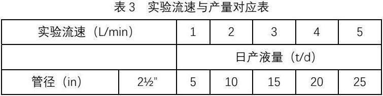 在实验室中针对该区块结蜡井的井口温度夏季为10-35℃,冬季10℃左右、原油析蜡点温度22.5℃和产量情况(20t/d左右),按照流速相似的原则,参照实验流速与产量对应表设定了实验流速。实验流速选择为0.5-3升/分,制订了详细的实验计划,见表3。