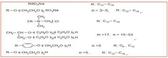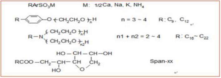 1.2.2活性剂型防蜡剂:这类防蜡剂公油擦性和水溶性两种。油溶性活性剂是通过在蜡晶表面的吸附,使之变成极性表面,从而避免非极性蜡的进一步析出。水溶性活性剂是通过在结蜡表面(如油管、抽油杆和设备表面)的吸附,使之形成极性水膜,阻止蜡在其上的沉积。另外水溶性活性剂还可以使含蜡油乳化,起到防蜡作用。油溶性活性剂型防蜡剂主要为石油磺酸盐和胺型活性剂。水溶性活性剂型防蜡主要是季胺盐型、聚醚型、吐温型、平平加型、OP型,也可用硫酸酯盐化或硫烃基化的平平加型和OP型活性剂。