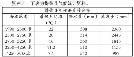 资料四:下表为得荣县气候统计资料。
