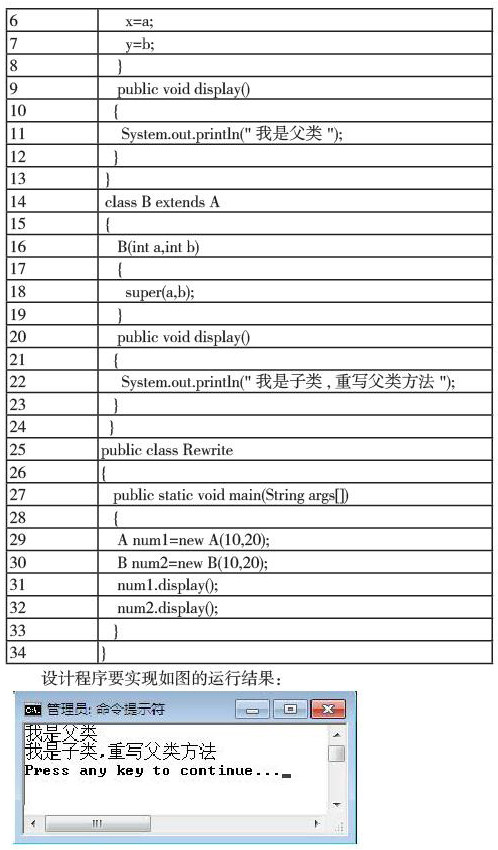 下面是重写的一个实例:B类继承A类,但重写A类的display()方法。