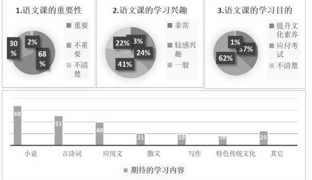 基于上述研究,笔者从学习动机、学习信心、情感焦虑三方面设计了调查问卷,学习动机涵盖语文课程的重要性、学习兴趣、学习目的、期待的学习内容等,学习信心主要调查学生对自己语文水平的评价、语文课程学习的信心、当前教材的难易程度等,情感焦虑以问答的形式调查面对线上语文课程的学习,学生主要的焦虑来源。