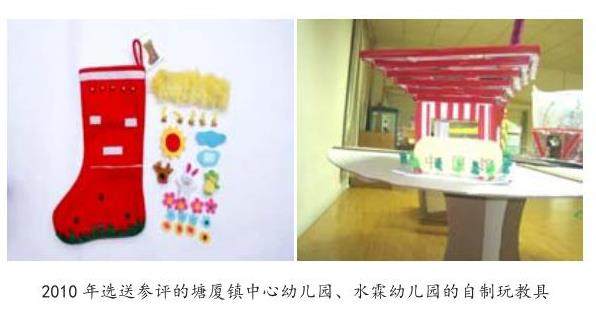 首先,我镇参照东莞市举行的幼儿园自制玩教具展评活动,连续三年举行“塘厦镇幼儿园优秀自制玩教具展评”活动。玩教具对照科学类、运动类、语言类、音乐类等应用领域,按照教育性、实用性、操作性、科学性、创新性、趣味性、简易性、安全性等方面进行自我创作。