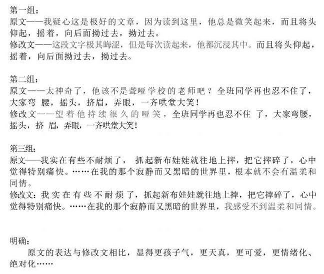 (1)师:请比较原文和修改文,分析原文在语言表达上有什么特点?