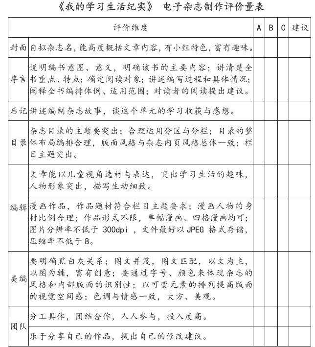 依据评价量表,个人完善作品,小组完成杂志制作,推送分享电子杂志。