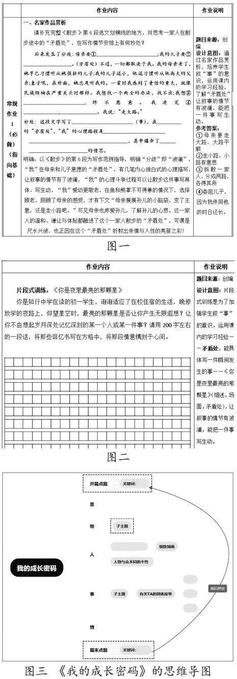 第三层级:情境大作文写作,多元评价见真知。由点到面,从课内延伸到课外,由片段训练到整篇习作,设置具体的生活化的情境作文题《我的成长密码》,要求具体写清楚一件发生在我(主人公)身上的事。题目还特别提示让学生关注到故事情节的“矛盾处”,让情节有起伏,情感有波澜。